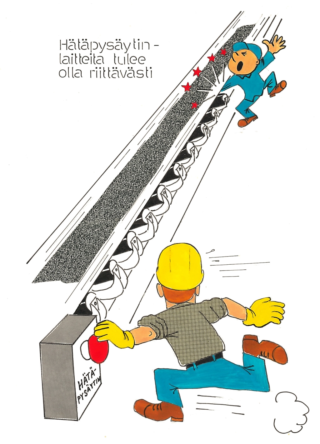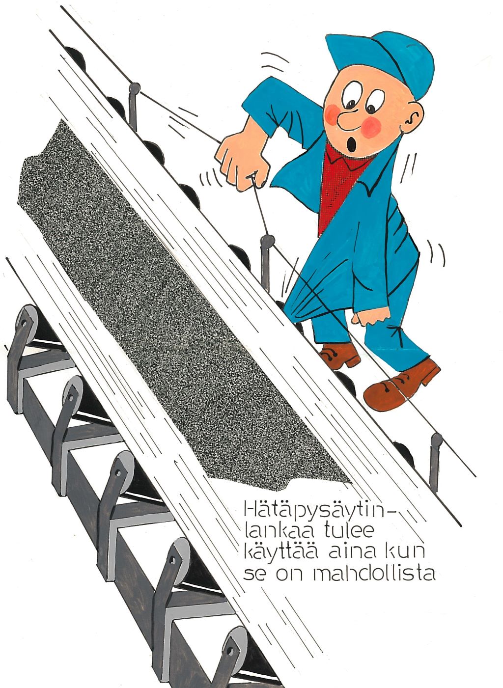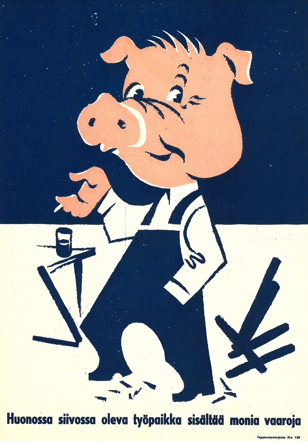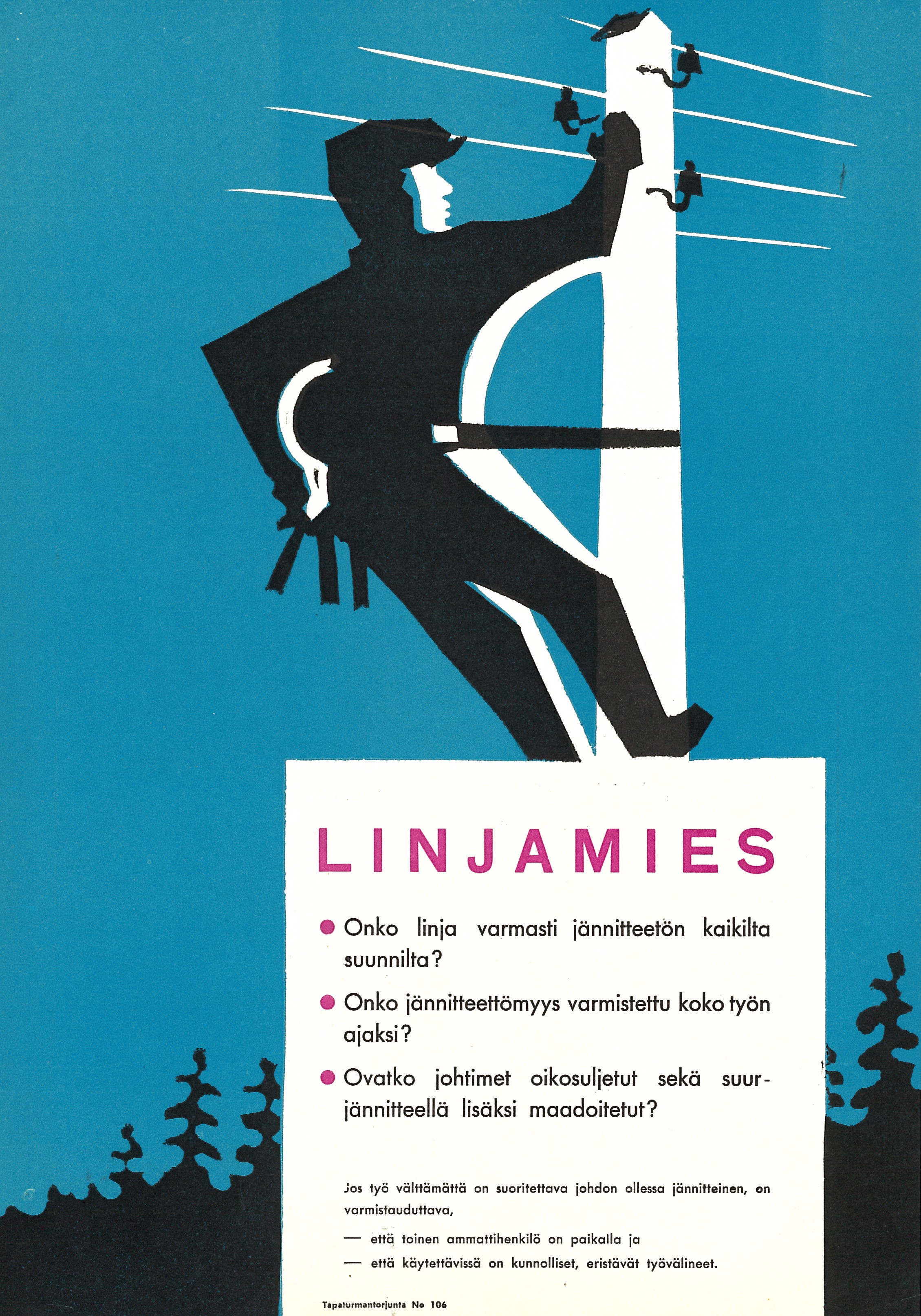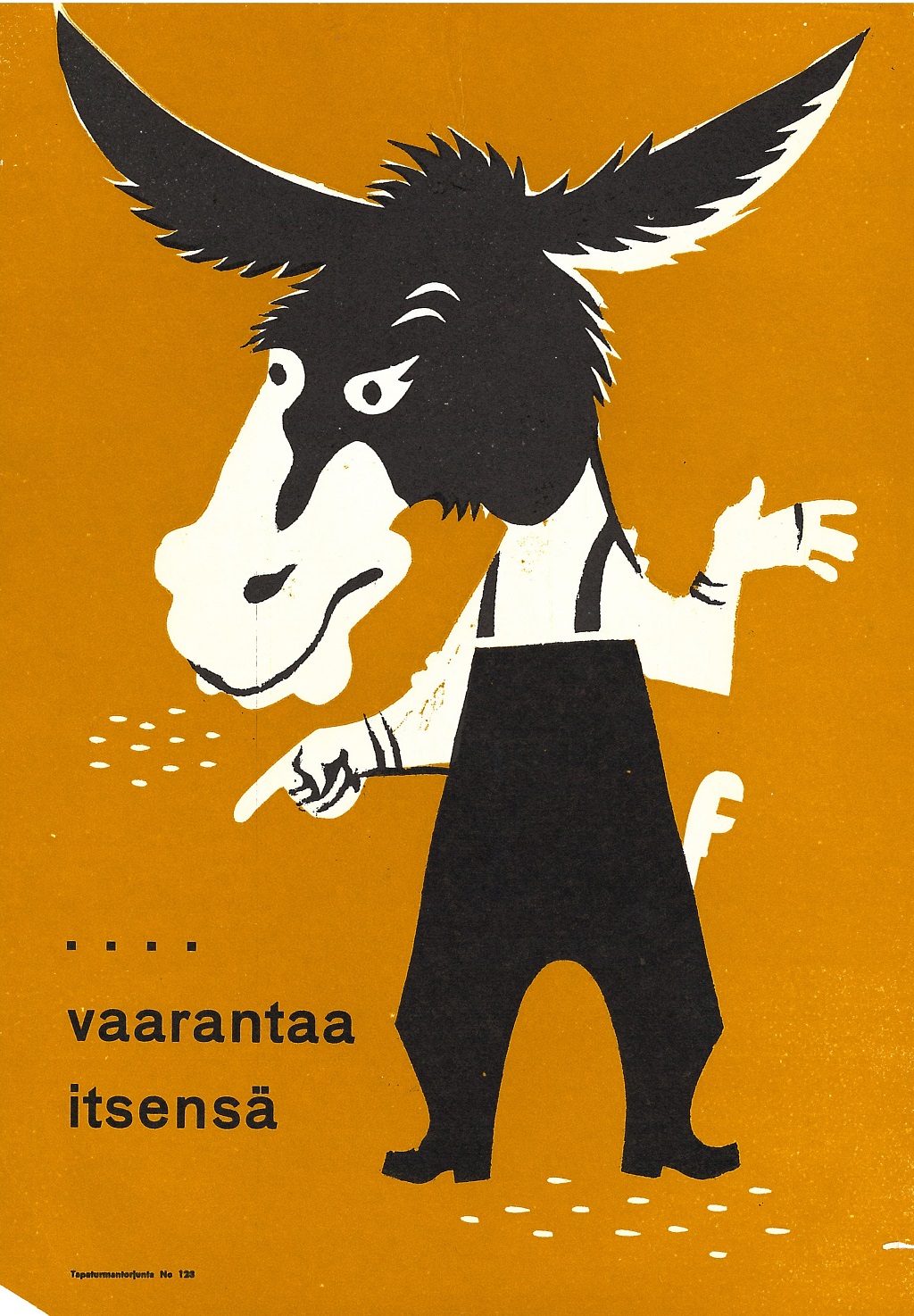 Näyttelyssä on julisteita 1930-luvulta alkaen. Julisteet kuvastavat oman aikakautensa keinoja, joilla pyrittiin parantamaan työsuojelua työpaikoilla. Julisteita ei saa ladata kaupalliseen käyttöön.