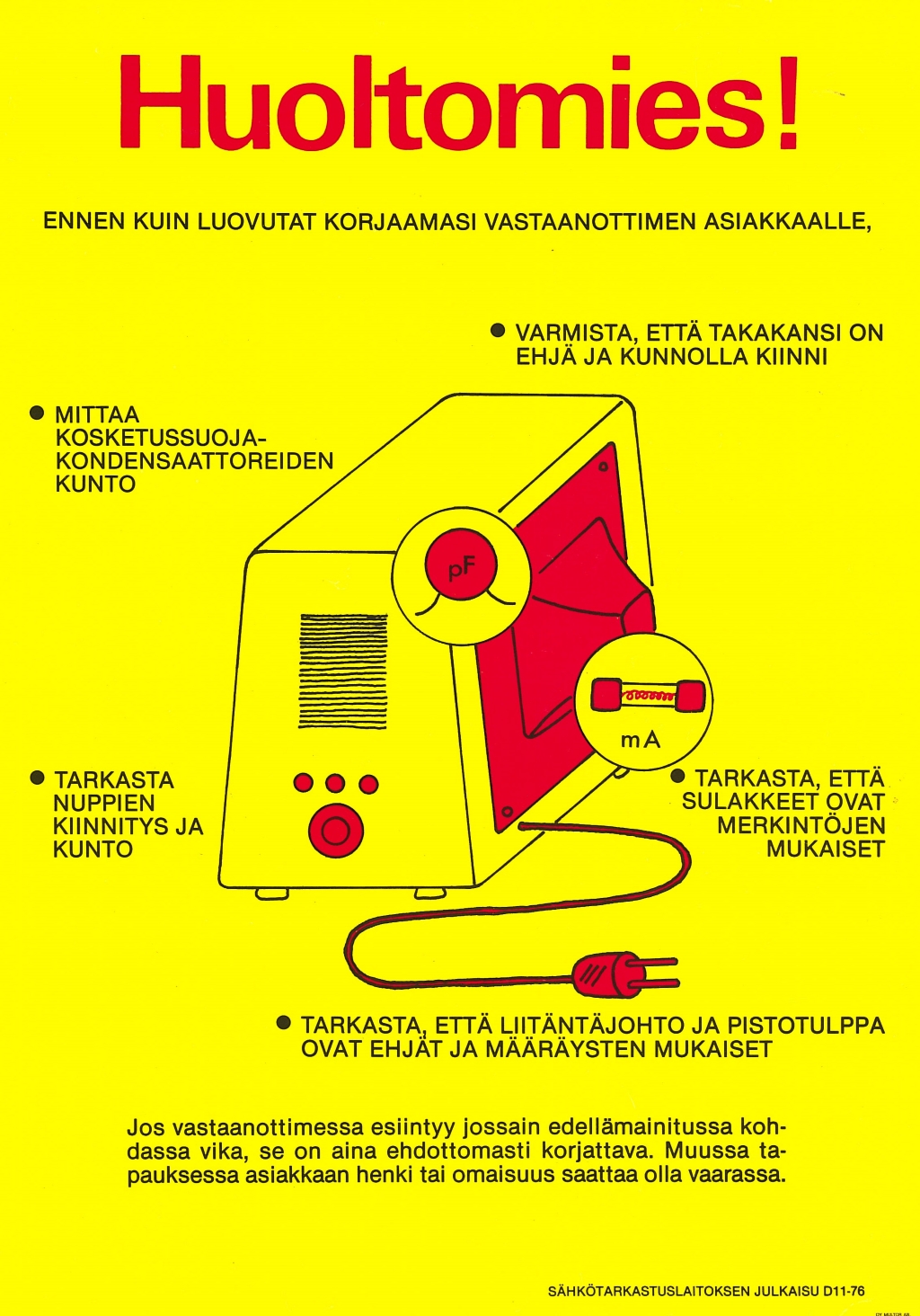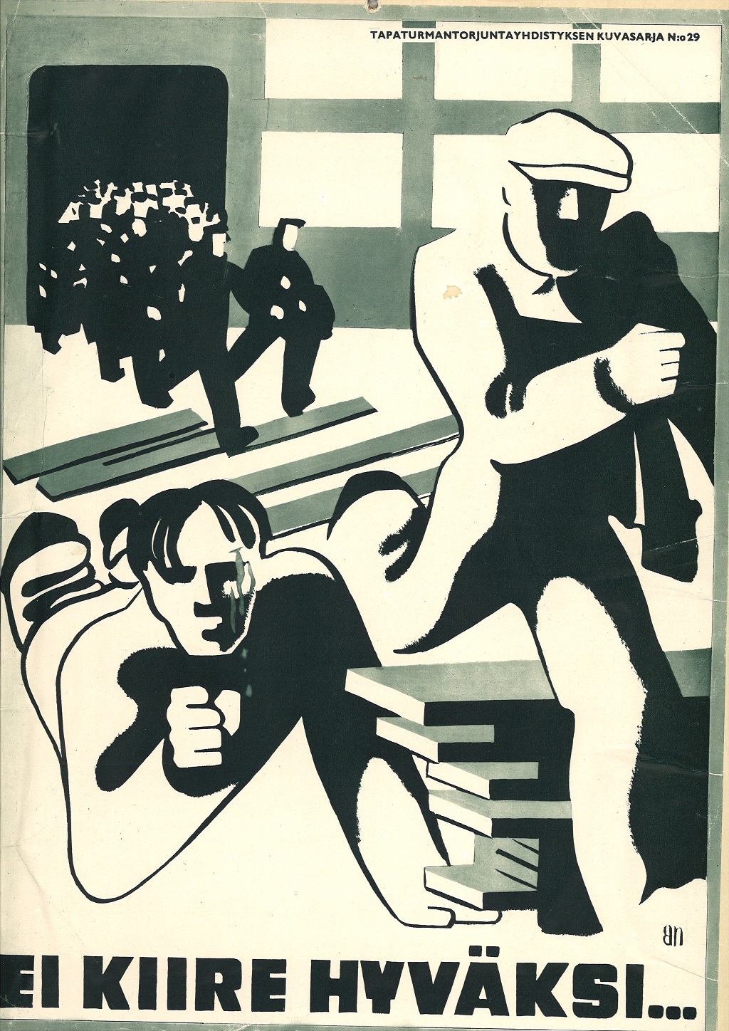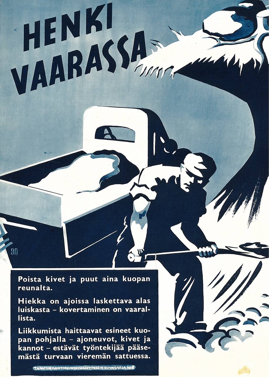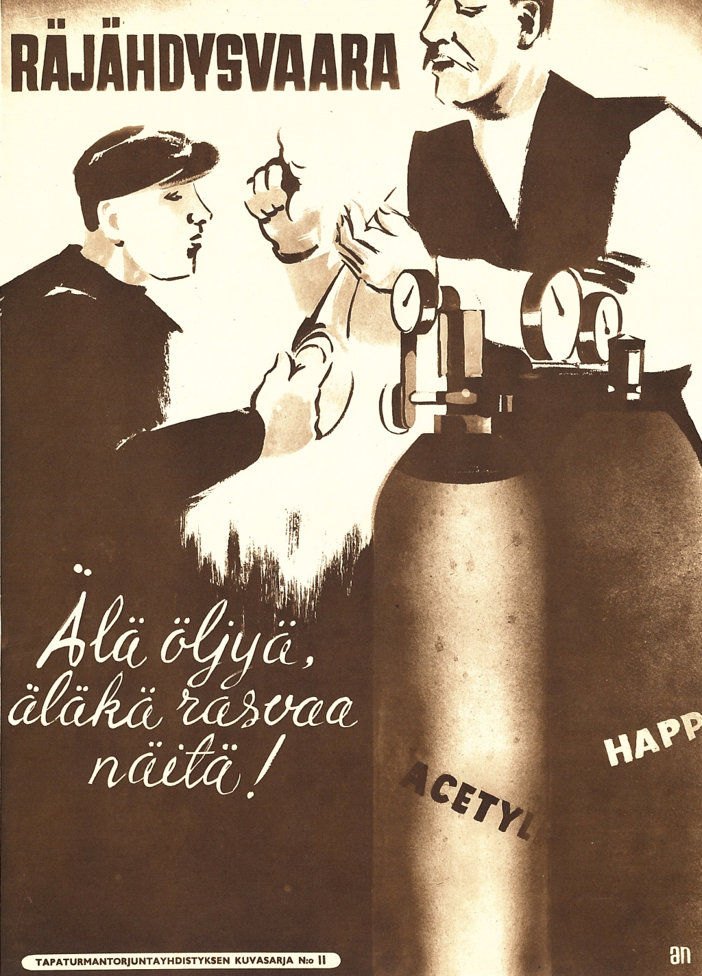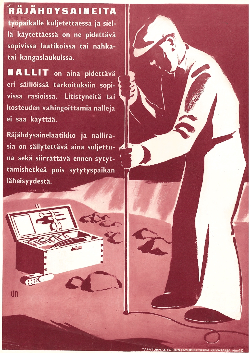 Näyttelyssä on julisteita 1930-luvulta alkaen. Julisteet kuvastavat oman aikakautensa keinoja, joilla pyrittiin parantamaan työsuojelua työpaikoilla. Julisteita ei saa ladata kaupalliseen käyttöön.