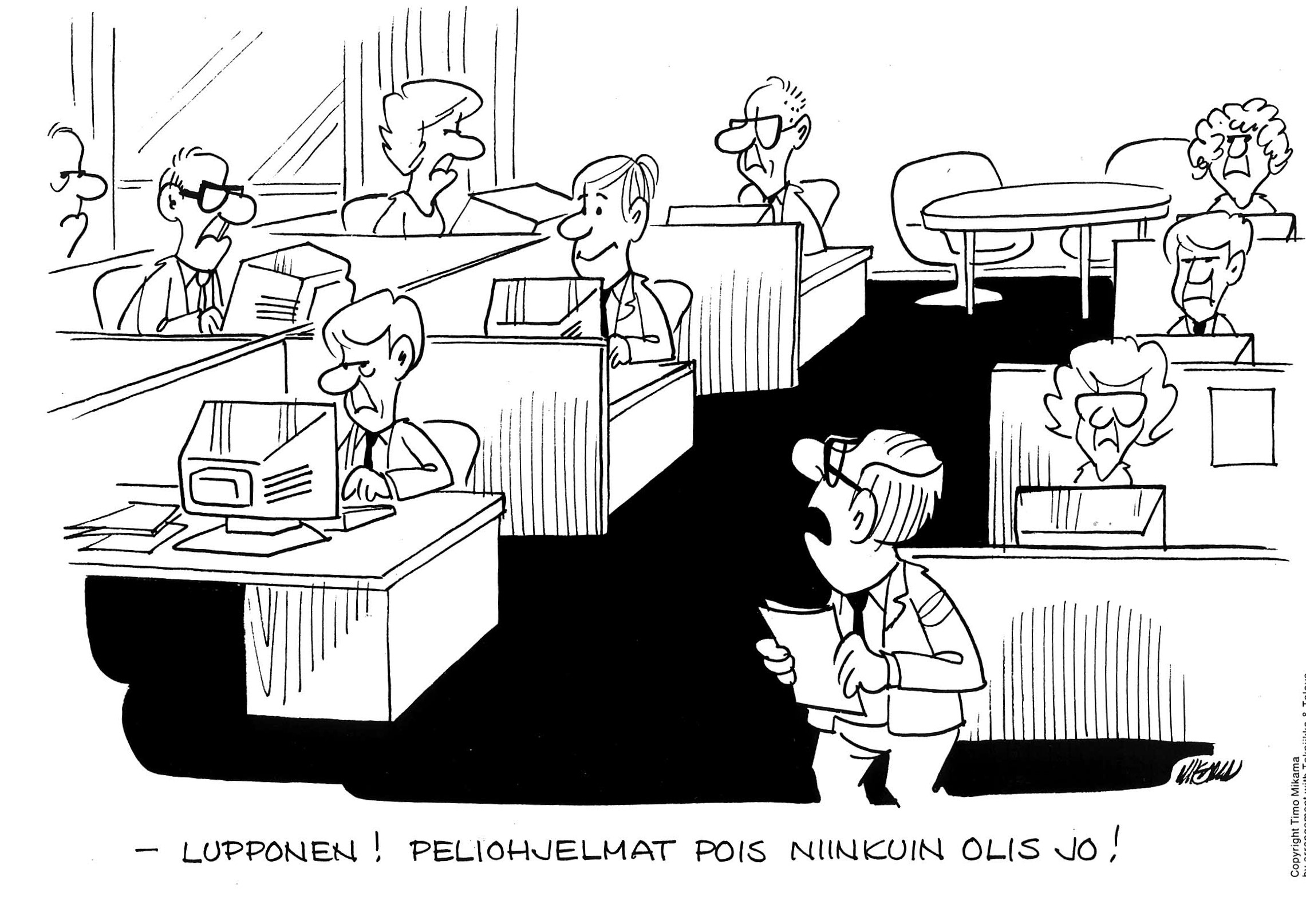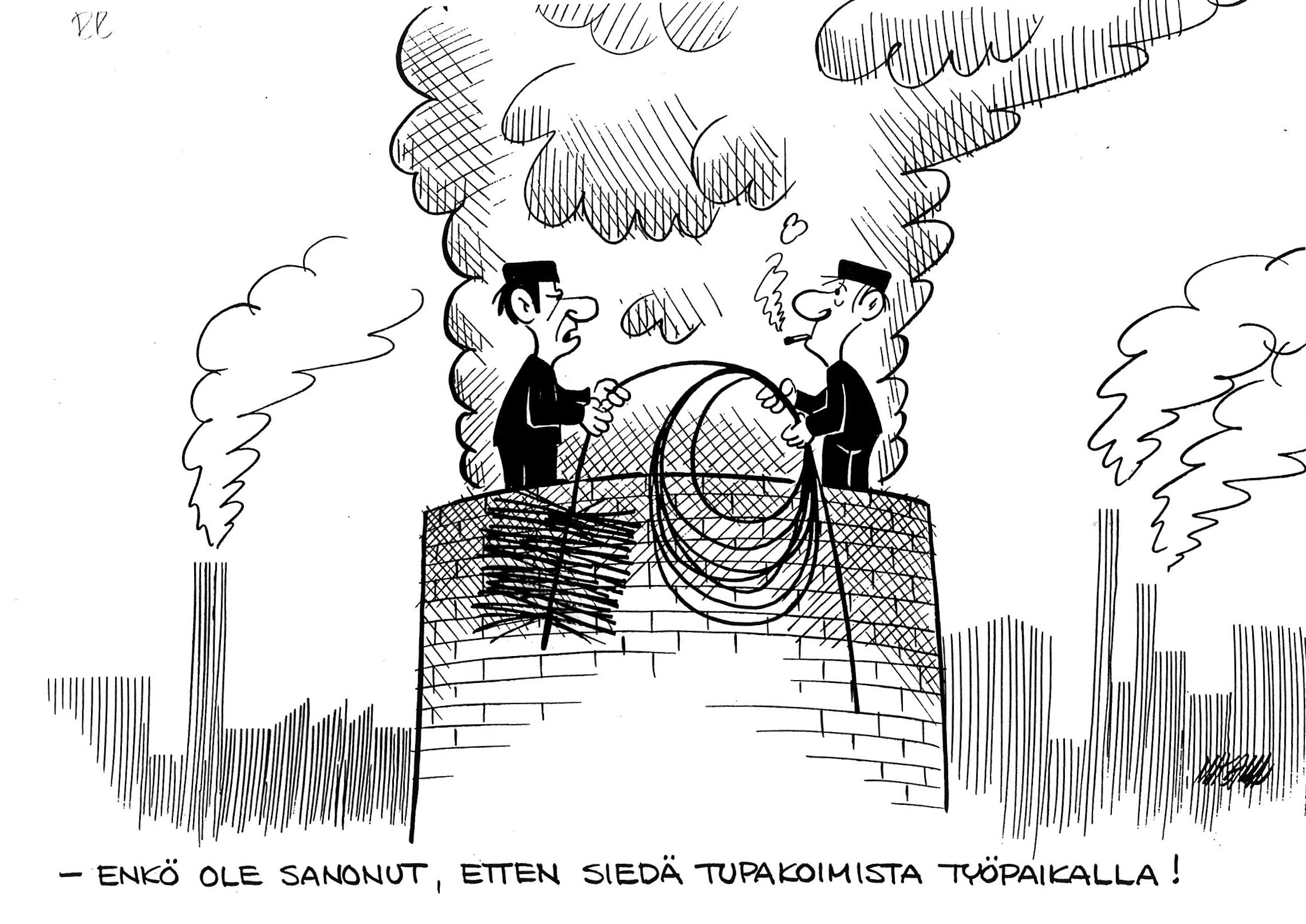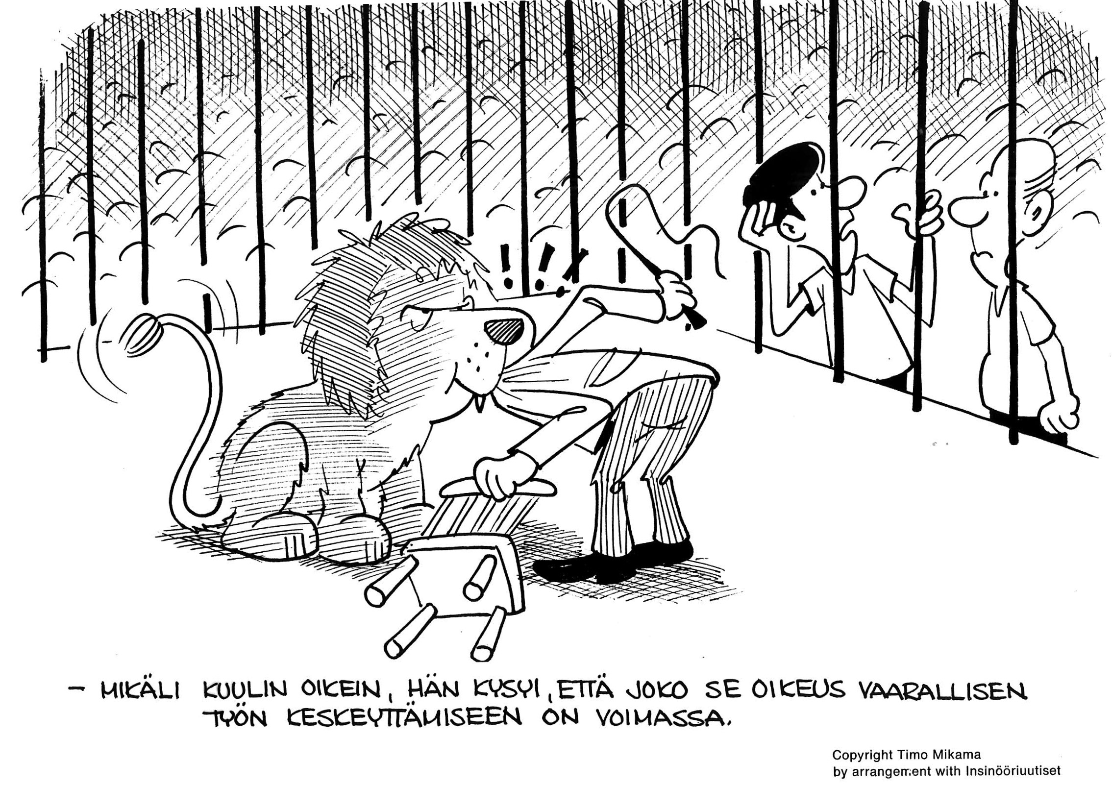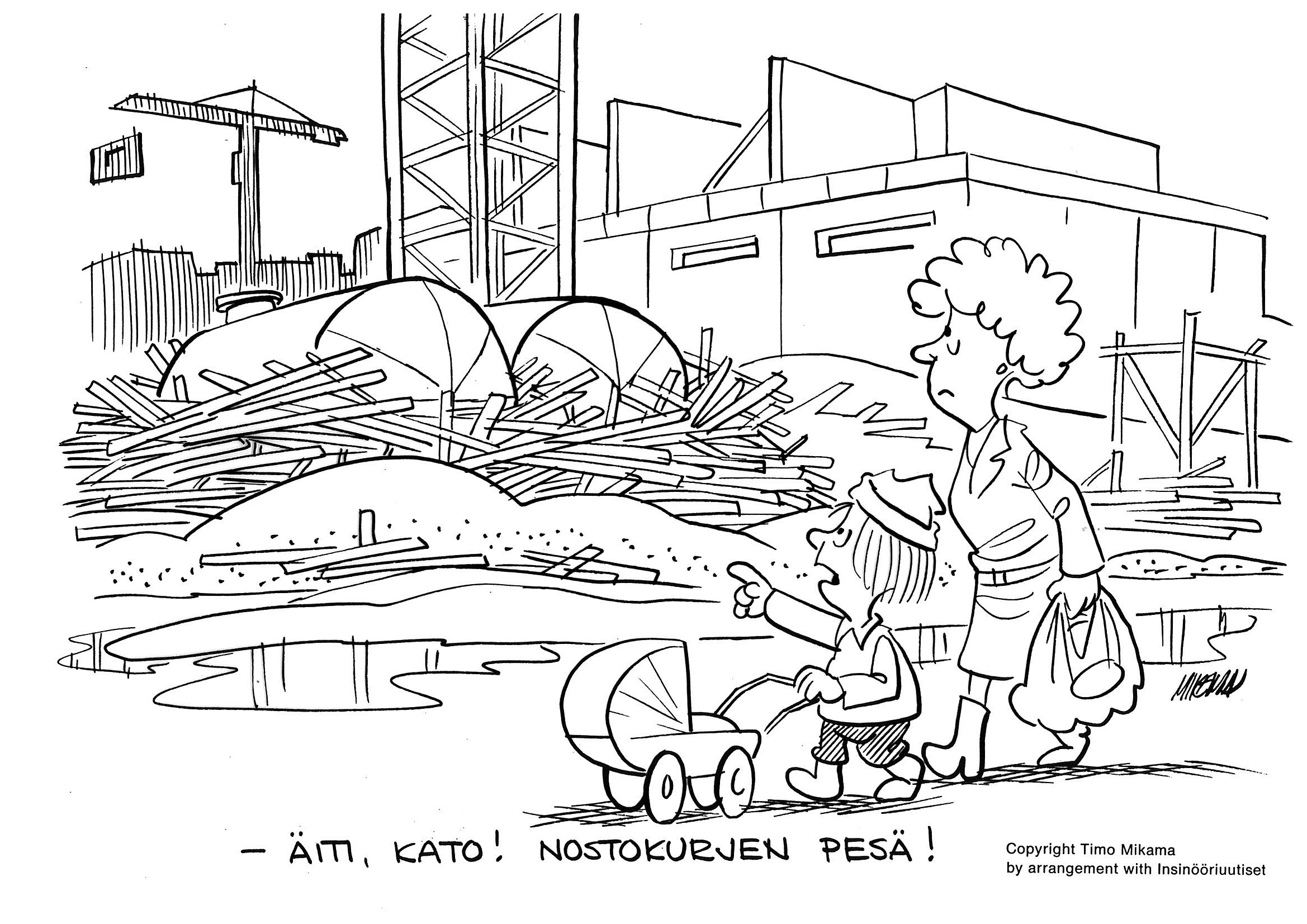 Timo Mikaman piirroksia. Teokset on julkaistu alunperin Tekniikka ja talous -lehdessä 1990-luvulla. Työsuojeluhallinnolla on teoksiin erillissopimuksella julkaisu ja käyttöoikeudet.