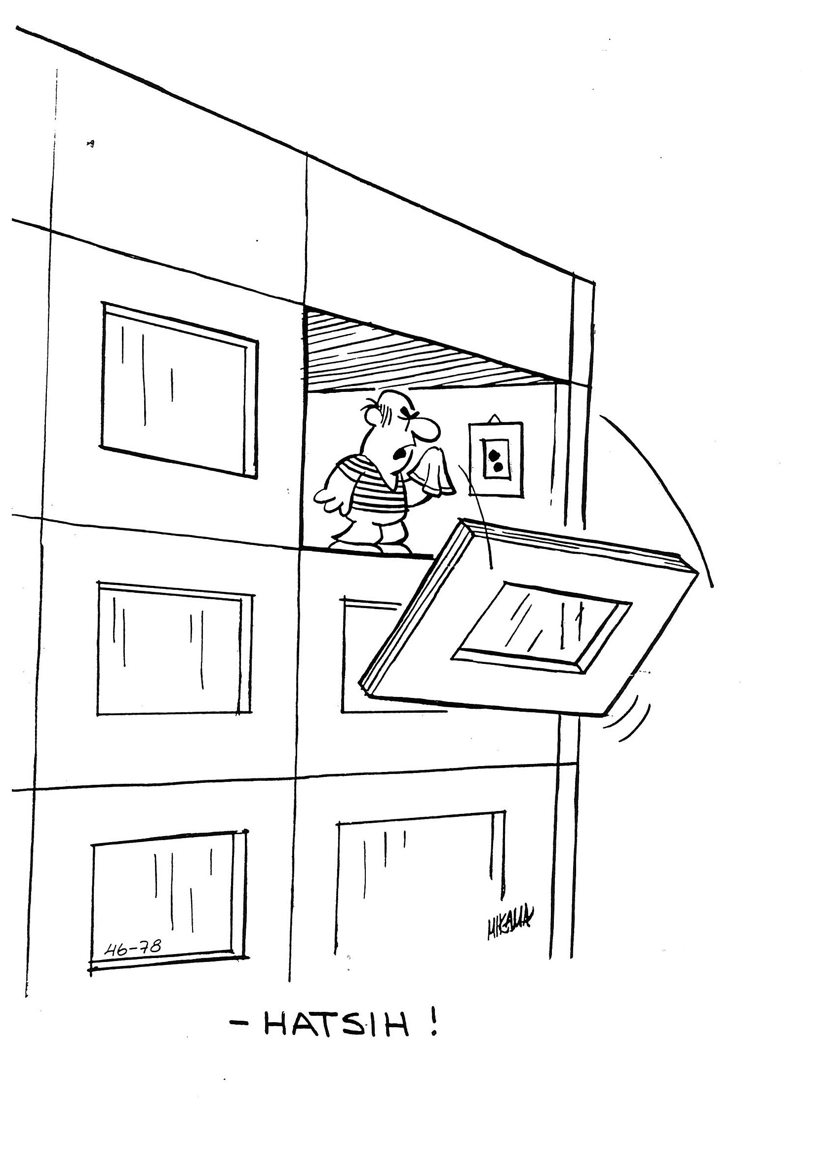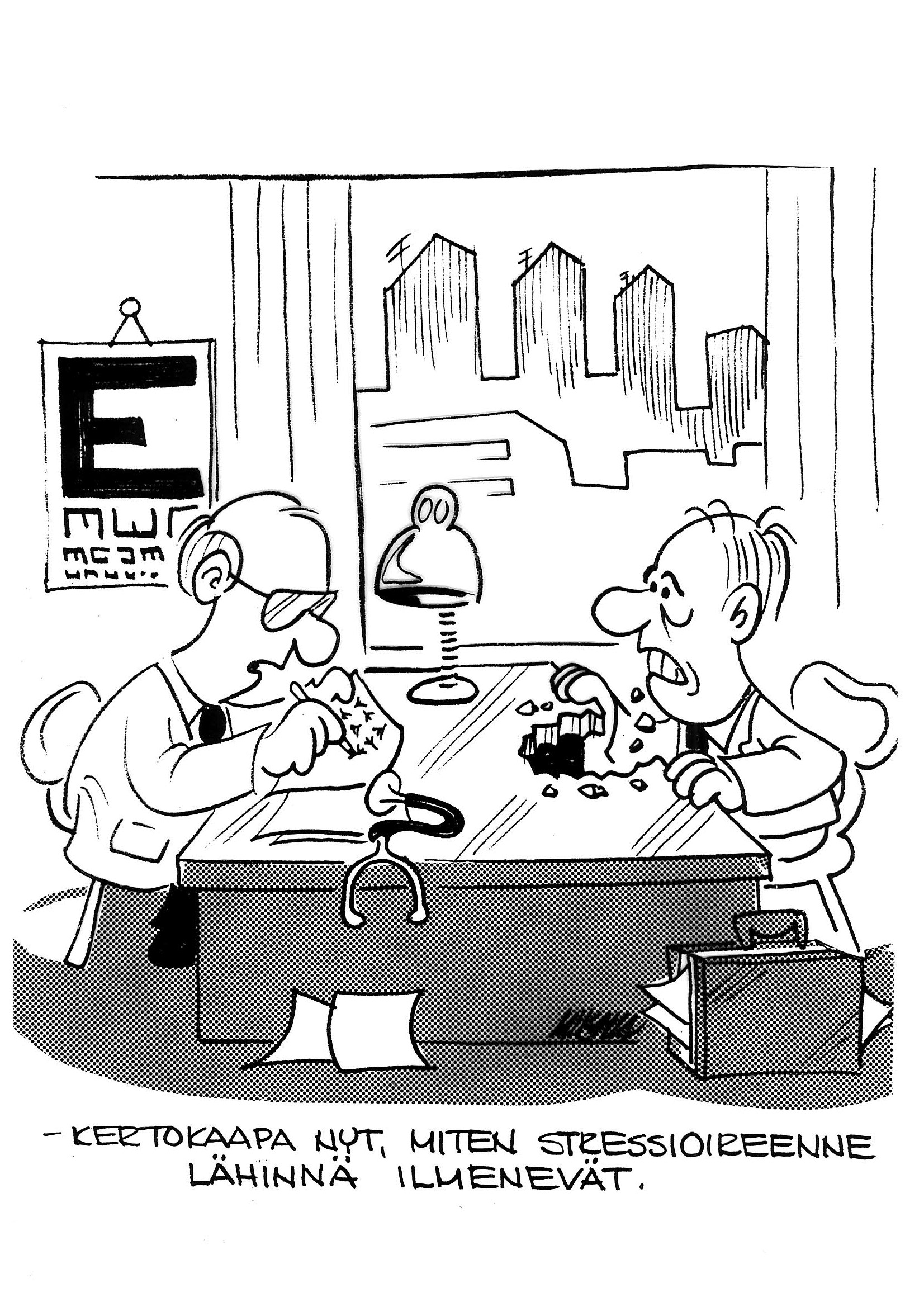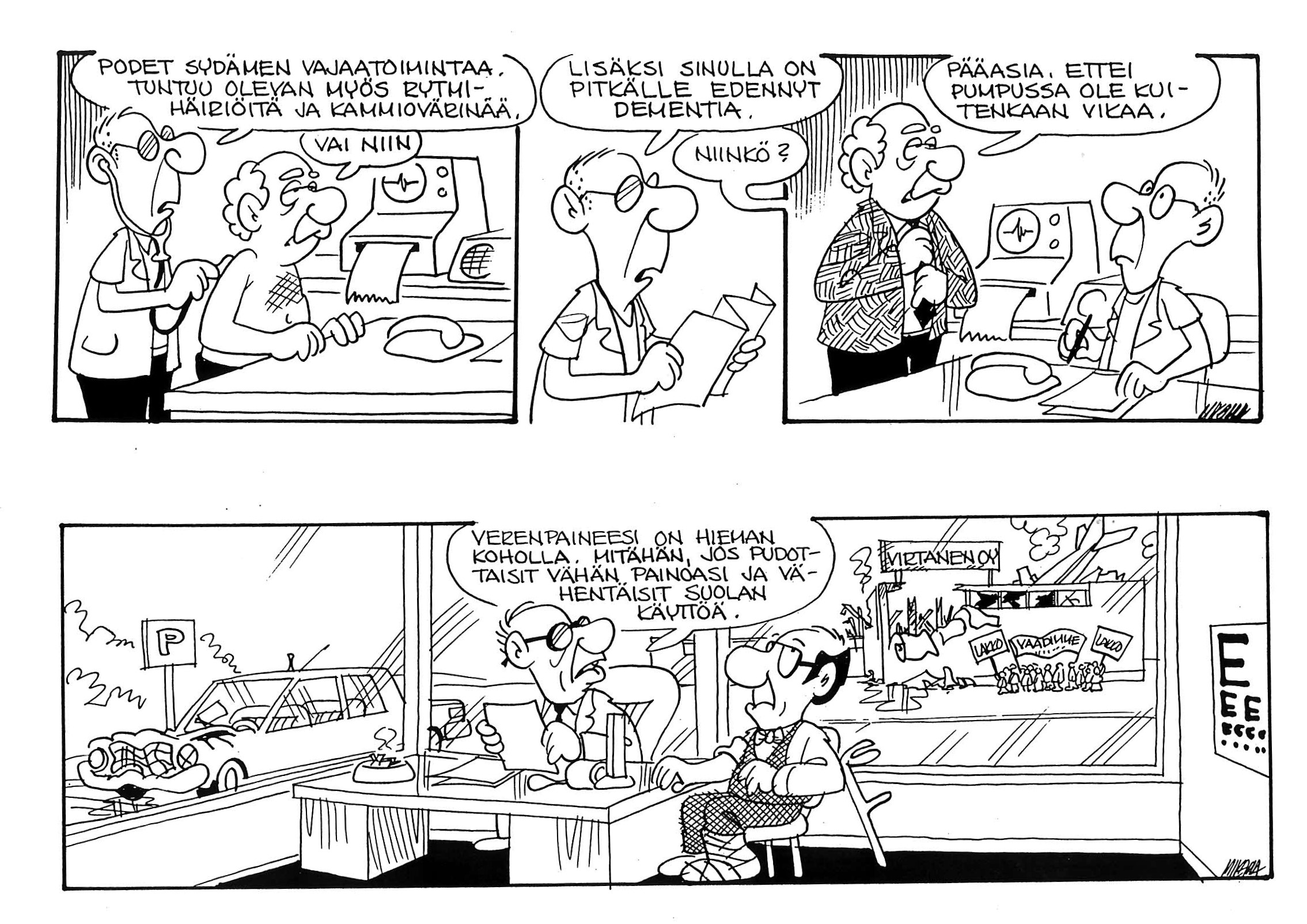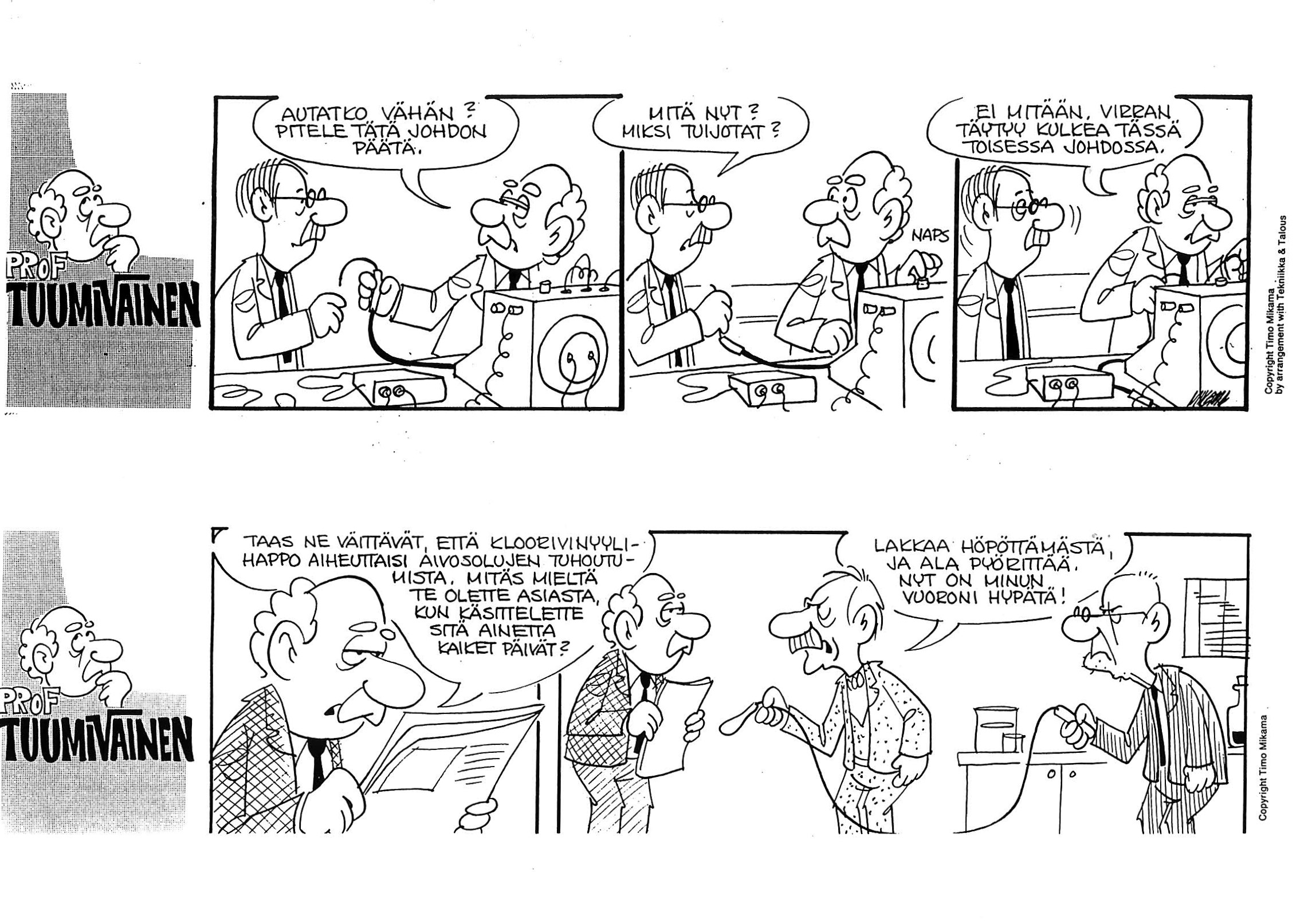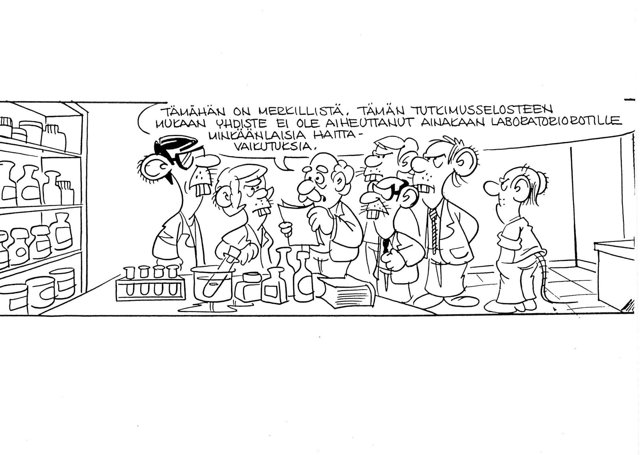 Timo Mikaman piirroksia. Teokset on julkaistu alunperin Tekniikka ja talous -lehdessä 1990-luvulla. Työsuojeluhallinnolla on teoksiin erillissopimuksella julkaisu ja käyttöoikeudet.